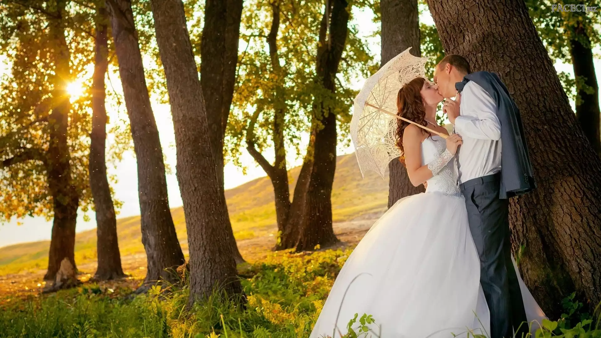 Las, Para, Jesień, Słońca, Nowożeńców, Promienie - faceci.biz
